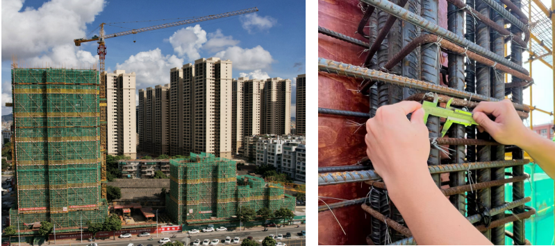 根据现阶段工程项目形象进度,集团公司开展在建工程项目实体质量抽查抽测进一步强化工程实体质量监管。对主体施工阶段的检查项目:“北墩莲池片区‘三旧’改造项目(三期B09(之一)地块)”、“东南工业城工改工项目A、B幢厂房”及“汕头市金平区新世界家私城片区‘三旧’改造项目”分别进行了主体结构混凝土回弹法测试、现浇混凝土结构观感质量及尺寸偏差、垂直度实测;混凝土强度采用回弹仪现场随机抽检,经计算后能满足设计要求;平整度及垂直度实测,每个主体结构阶段项目的构件抽查情况:混凝土强度共6批次,合计30个构件;平整度共6批次,合计60点;垂直度共6批次,合计60点,合格率均在90%以上,满足规范要求。对钢筋直径、间距随机抽查,合格率为100%,满足规范要求。