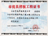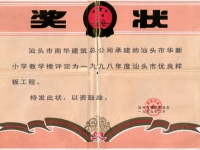 汕头市华新小学教学楼市样板证书